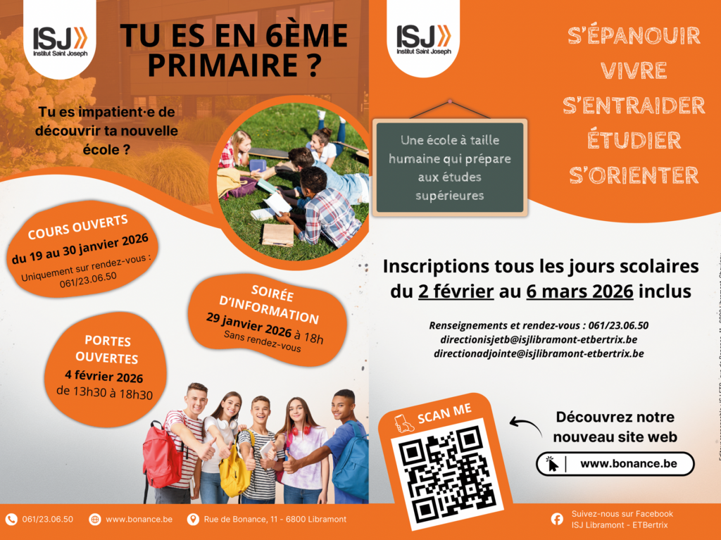 Situé à l’orée d’un magnifique bois à Libramont, l’Institut Saint-Joseph Bonance (ISJ Bonance) offre à ses élèves un cadre d’apprentissage exceptionnel où il fait bon vivre, étudier et s’épanouir. L’école, à dimension humaine, met tout en œuvre pour que chaque jeune puisse exploiter pleinement ses potentialités et construire son avenir dans un environnement serein et stimulant.