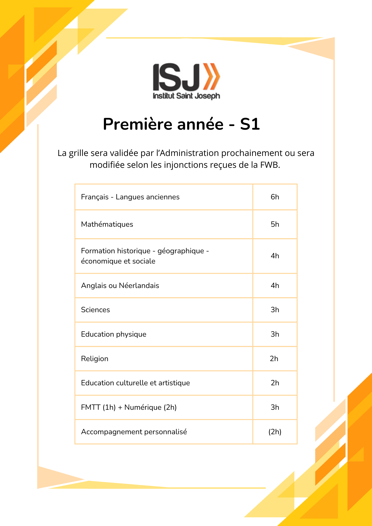 • S1 pour les élèves qui poursuivront dans le Tronc Commun en 1er secondaire à la rentrée 26-27